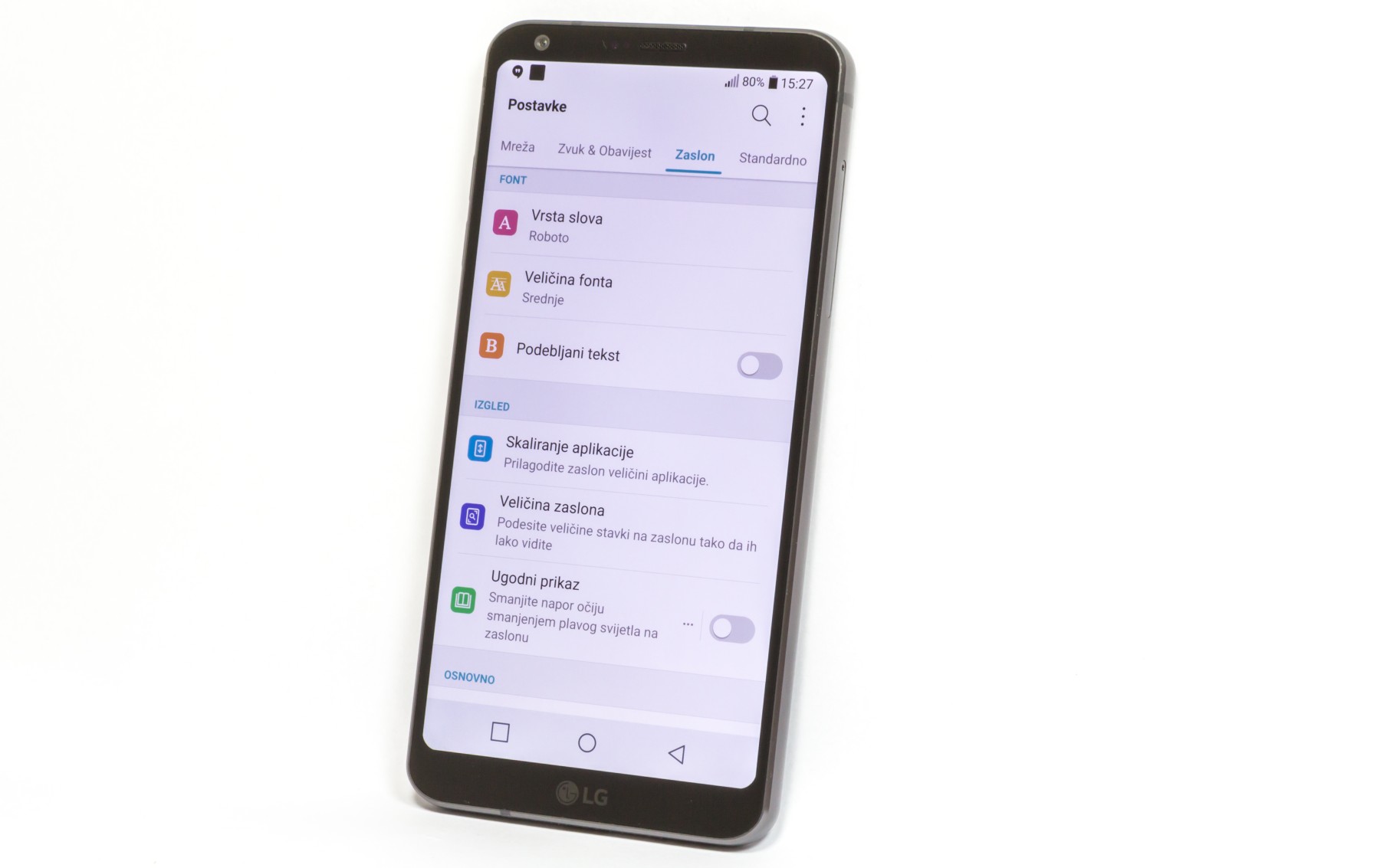 Dakle, zadržana je širina ekrana od 1440 piksela karakteristična na quad HD, ali je po visini dodano 320 piksela. Nismo primijetili da zbog toga pati prikaz aplikacija, iako se u postavkama telefona aplikacijama može postaviti skaliranje prikaza pa možemo imati standardni 16:9 kao na većini današnjih telefona, zatim 16,7:9 te puni ekran 18:9. Što god da odaberete, nećete primijetiti neko primjetno izobličavanje.