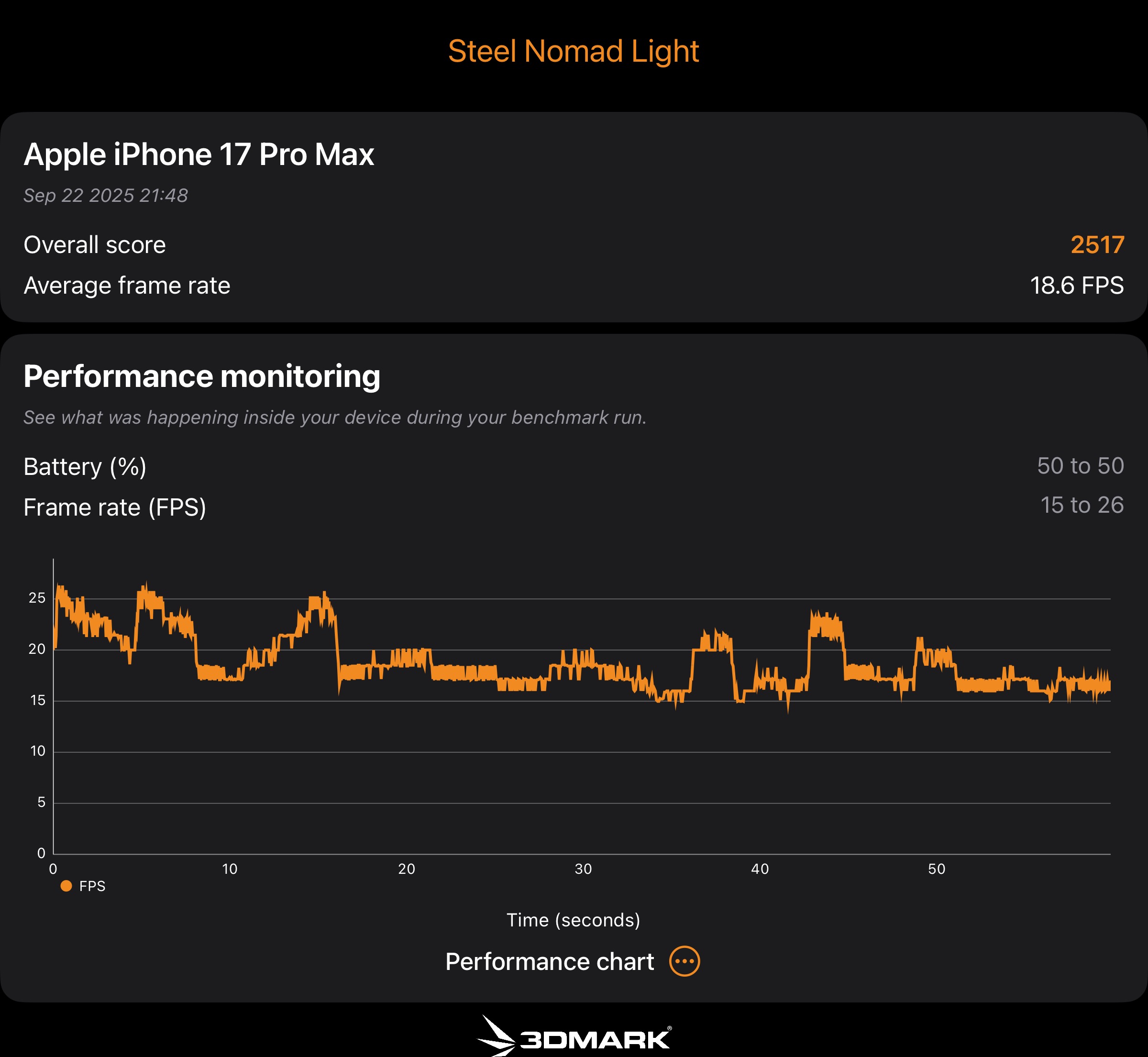 U teoriji to zvuči odlično, a u stvarnosti djeluje vrlo dobro. Novi iPhone 17 Pro Max pružio je odlične rezultate na svim benchmark testovima koje smo isprobali, a igre poput Grid: Autosport, Genshin Impact i Resident Evil 4 izgledaju fenomenalno.