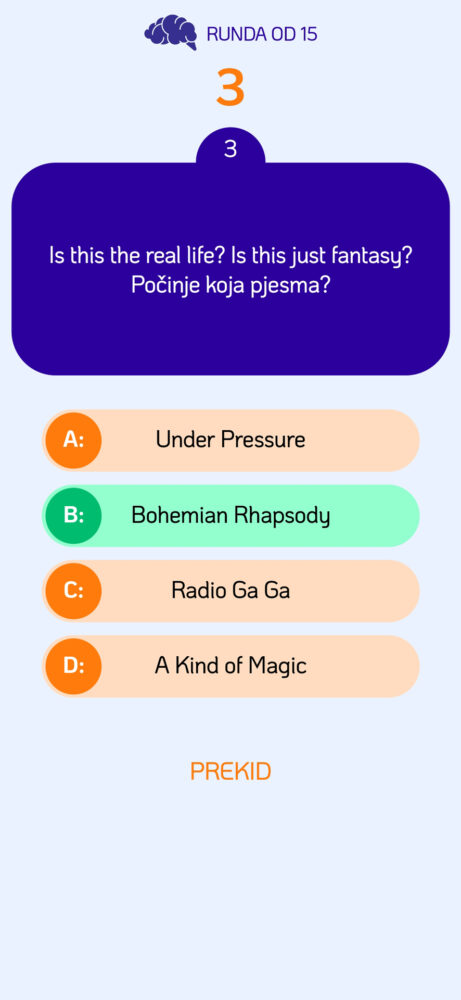 Trgovine aplikacijama su krcate kvizovima, ali se radi o ofrlje prevedenim stranim kvizovima, starim aplikacijama koje se neredovito nadograđuju ili onima koje imaju mali fundus pitanja, pa se vrlo brzo krenu ponavljati. 3VIA je kviz kojeg su razvili veterani zagrebačke pub kviz scene, vrlo je aktualan, te se često nadograđuje novim setovima pitanja iz svih dostupnih kategorija kao što su povijest i zemljopis, književnost, glazba, film, sport i druge. Kviz je moguće igrati na tri načina, kao rundu od 15 pitanja s rezultatom zbira točnih odgovora, vremenski ograničenu rundu od jedne minute ili pak rundu od sto točnih odgovora koja se prekida nakon prve igračeve pogreške. Ako trenirate sive stanice za nastup na TV kvizu ili obilazite pub kviz scenu, 3VIA je odličan i obavezan alat za treniranje najvažnijeg organa u tijelu. |