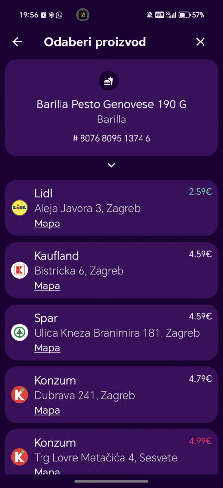 Ako redovito kupujete u Konzumu, ovo je mobilna aplikacija koju jednostavno ne smijete ignorirati. Osim što redovito dobivate mjesečni popust od 10% na cjelokupni iznos jedne kupnje, uključeni su brojni popusti na različite artikle, kao i izazovi koji vas potiču da kupujete točno određene artikle za posebne bonuse. Posebno je zanimljivo da aplikacija „uči“ o vama, pa dobivate posebne ponude baš za one artikle koje inače kupujete. Preko aplikacije možete pregledavati sve svoje prethodne transakcije i račune, a također možete isključiti izdavanje pisanih računa. I tu leži jedan od velikih problema – voljeli bismo da ga Konzum riješi čim prije. Problem se pojavljuje u manjim lokalnim trgovinama gdje postoje posebna sigurnosna vrata za sprečavanje izlaska kupca bez skeniranja računa s dodanim kodom za provjeru. Kad račun primate u aplikaciju, onda nemate takav kod, pa morate maltretirati prodavača da vam otvori vrata, ili ih trebate jednostavno gurnuti na silu (uz uključivanje alarma) kako biste izašli iz trgovine. |
