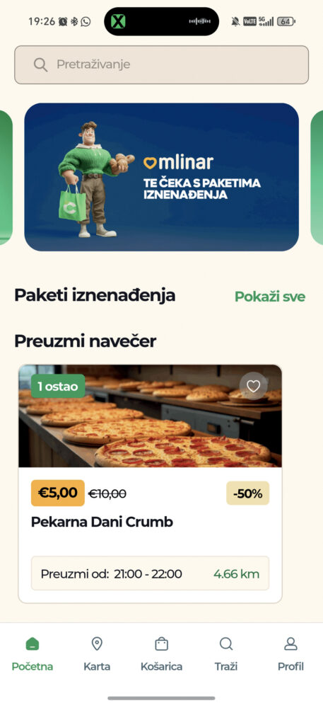 Bacanje viška hrane je realan i tužan problem kojim se mnogi restorani, pekare i trgovine moraju baviti na dnevnoj bazi. Kako bi se količina pripremljene hrane koja završi u otpadu smanjila, razvijena je aplikacija Crumbs. Ova pametna ideja spaja lokale s krajnjim korisnicima koji žele jesti hranu iz restorana po povoljnijoj cijeni. Tako određeni lokali koji su se uključili u akciju nude određene pakete proizvoda po atraktivnoj cijeni. |