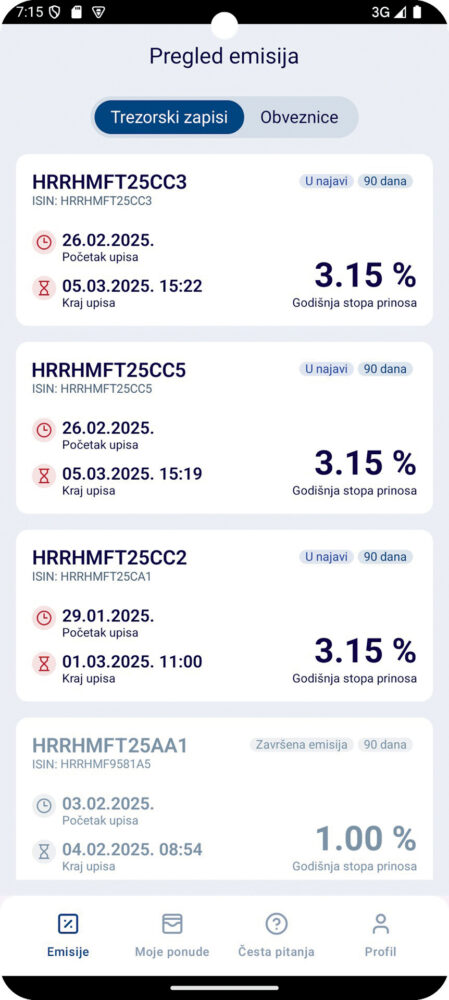 Pomoću ove aplikacije naša vlada je uspjela pomoći i „natjerati“ veliki broj ljudi da počnu ulagati svoja novčana sredstva, umjesto da ih čuvaju u bankama, madracima i čarapama, čime stalno gube na vrijednosti. M-Riznica nudi građanima mogućnost praćenja ponuda trezorskih zapisa, obveznica te pojedinih ponuda dionica privatnih tvrtki, kao i niz dodatnih informacija o tome kako sve to skupa funkcionira (mobilna aplikacija, ali i čitav postupak kupovine). Nakon što izaberete ono što vas zanima, možete pripremiti i uplatu te naknadno pratiti sve svoje privatne vrijednosne papire. |