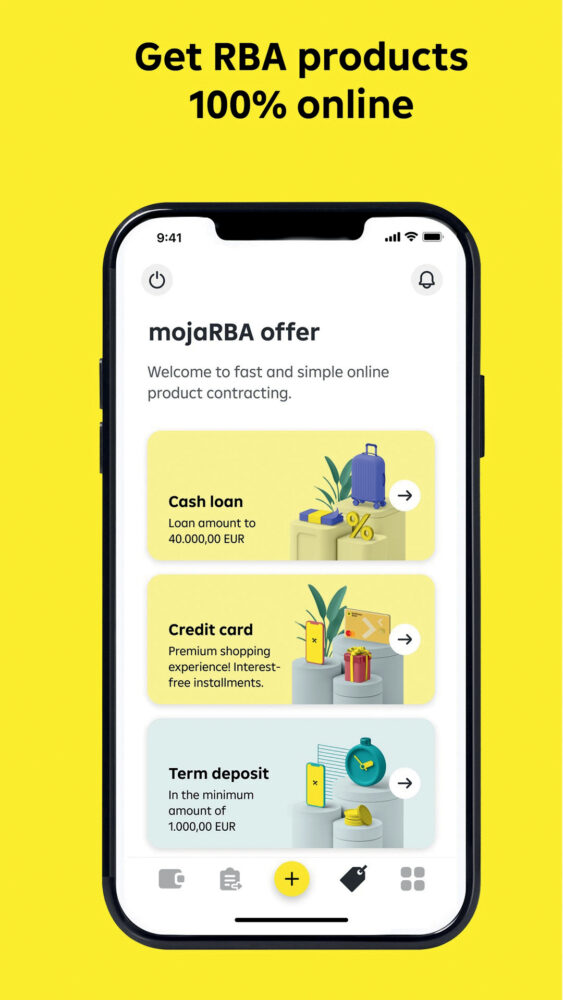 U mojaRBA aplikaciji pod Moja ponuda čekaju vas online proizvodi i usluge, od gotovinskog kredita, Mastercard Gold kreditne kartice, tekućeg računa i paketa usluga do štednog računa, oročenog depozita i UNIQA Putnog osiguranja. Možete u nekoliko koraka početi i investirati pomoću Raiffeisen mobilnog investiranja. A ovaj se popis mogućnosti kontinuirano povećava. Sve ovisi o vašim financijskim ambicijama, a mojaRBA aplikacija je tu kako biste sve napravili u hodu.