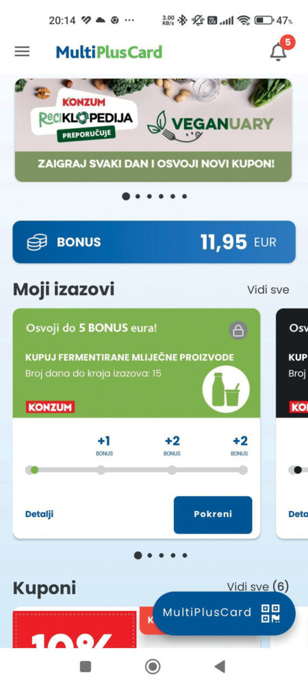 Program vjernosti popularnog lanca trgovina dolazi uz odličnu aplikaciju u kojoj skupljate bodove, aktivirate kupone za dodatne bodove koje zatim koristite za popust pri kupovini, ispunjavate košaricu prije nego što ste uopće otišli u trgovinu itd. |