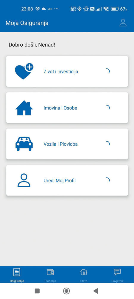Praktično sve povezano s vlastitim osiguranjima ugovorenima s osiguravajućom kućom „UNIQA osiguranje d.d.“ korisniku je dostupno preko ove mobilne aplikacije. Od pregleda svih aktivnih i neaktivnih polica, preko svih računa koje treba platiti u nekom trenutku do prikaza dodatnih informacija o štetama čije je rješavanje eventualno u tijeku. |