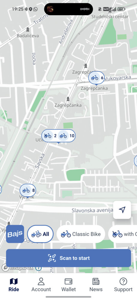 Iako se radi o stranoj aplikaciji i servisu, nextbike je prošle godine došao u glavni grad u personaliziranoj inačici naziva Bajs. Uz subvencionirane cijene, novu opremu i preko 180 stanica za ostavljanje iznajmljenog bicikla, Bajs je vrlo brzo postao izuzetno popularan način prijevoza u Zagrebu, iako je s radom počeo na jesen, kad su već počele sezonske kiše i jača zahladnjenja. Kako bi koristili Bajs, korisnici se moraju registrirati i uplatiti početni polog od 10 eura, što se automatski transferira u sredstva za najam, koji iznosi 50 centi za pola sata vožnje. Oni koji su naumili češće koristiti Bajs, mogu uzeti mjesečnu ili godišnju pretplatu. Godišnja pretplata iznosi 30 eura i daje korisnicima pola sata vožnje bez dodatne naplate svakog sata u danu. Uz dolazak toplijih dana, moći ćemo vidjeti hoće li Zagrepčani u većem broju prihvatiti Bajs kao alternativu prometnim gužvama u automobilima ili javnom prijevozu. |