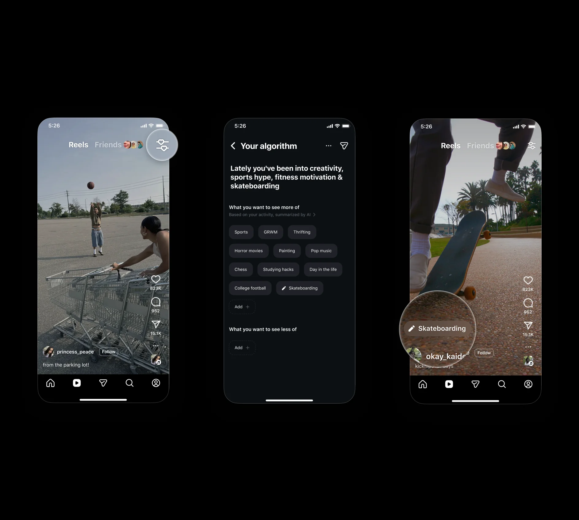 Mogućnost pregleda i podešavanja onoga za što algoritam misli da vam se sviđa proširit će se u budućnosti i na karticu Explore, “i na još više mjesta u aplikaciji uskoro”, navodi se u objavi na blogu tvrtke. Mogućnost pregleda i prilagodbe algoritamskih preporuka u Reelsima počinje se uvoditi u SAD-u. Globalno će postati dostupna na engleskom jeziku “uskoro”.
